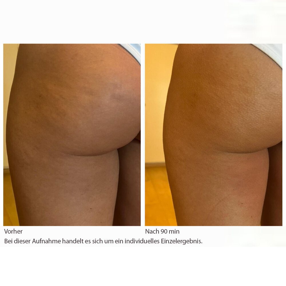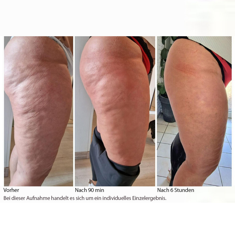 Both are also very important in the fight against cellulite, because healthy blood circulation supplies the skin cells with nutrients and oxygen. This in turn supports the renewal, repair and strengthening of the skin structure. And resilient skin is much better able to resist the formation of cellulite and thus contributes to an even and toned appearance.