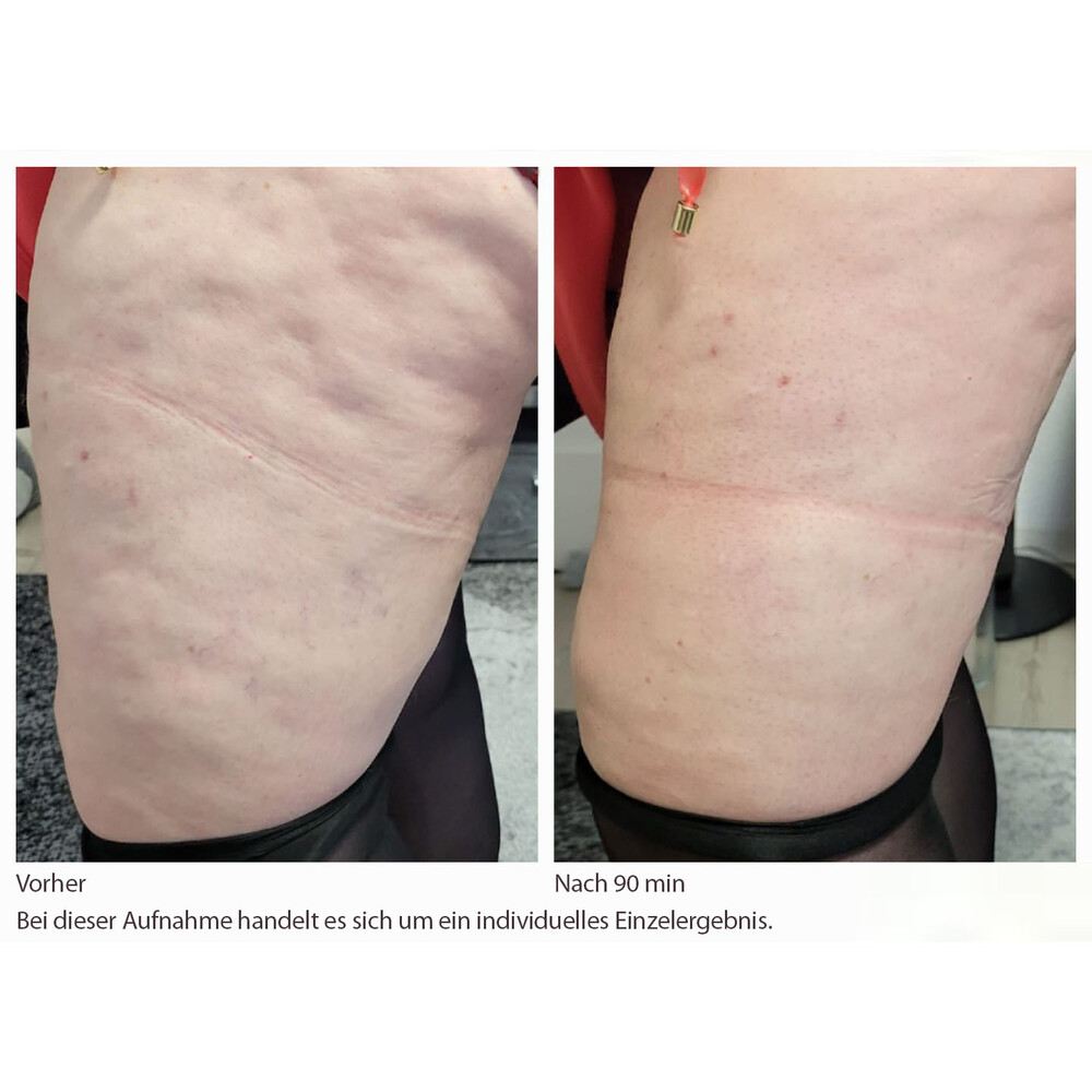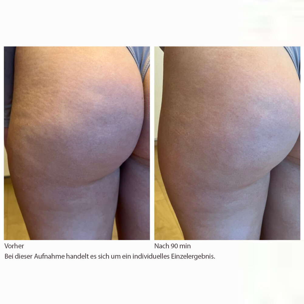 The result is that the skin overall becomes significantly firmer and voluminous and therefore more resilient. Renewed attacks on the fat cells will no longer be able to achieve much. They bounce off as if they were hitting an elastic bulwark.